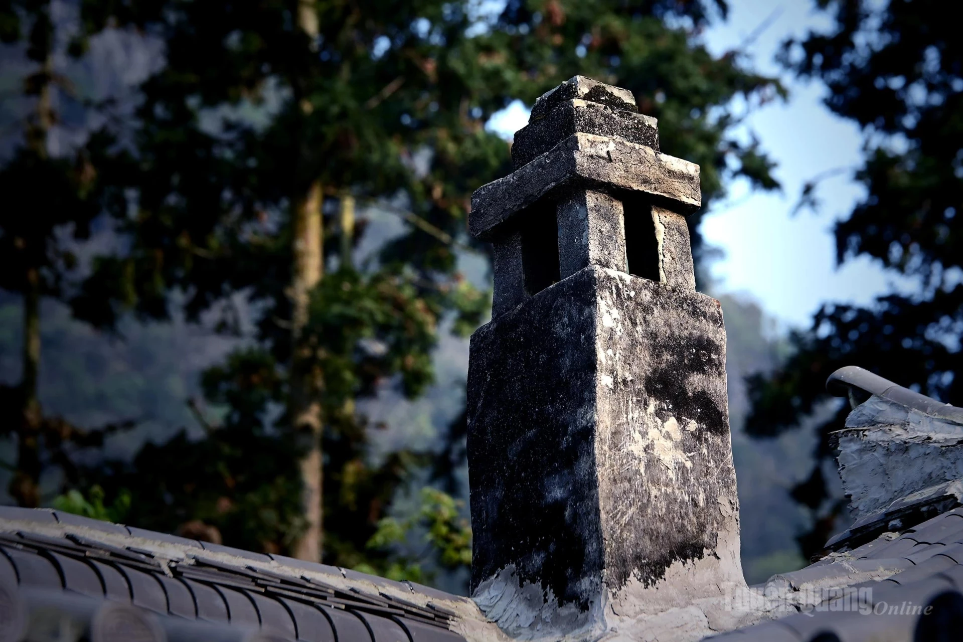 | The surrounding walls are built of stone, the roofs are covered with yin-yang tiles, and the structural framework is made from rare stone pine wood. |